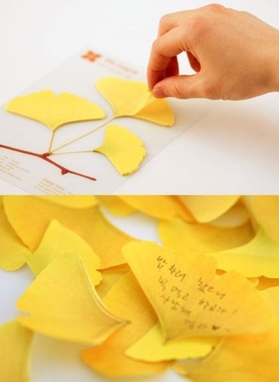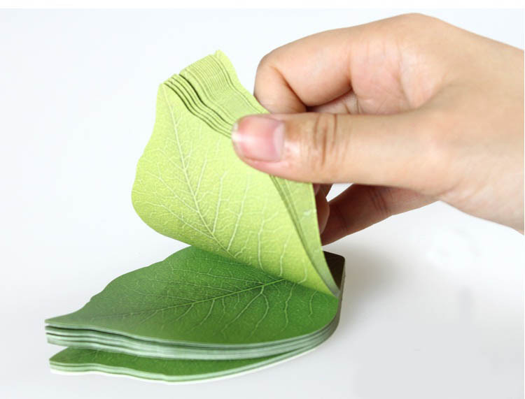 דפי ממו מועצבים בצורת עלים ומעבירים תחושה ירוקה ורעננה.