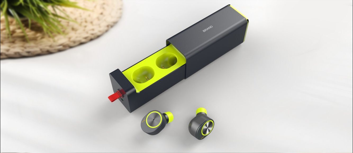 אוזניות ספורט מעוצבות המגיעות בתוך מארז הטענה.