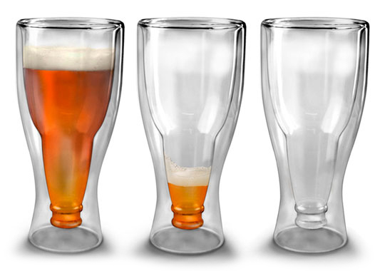 שכבה כפולה של זכוכית המונעת התחממות של הבירה בזמן החזקת הכוס.
