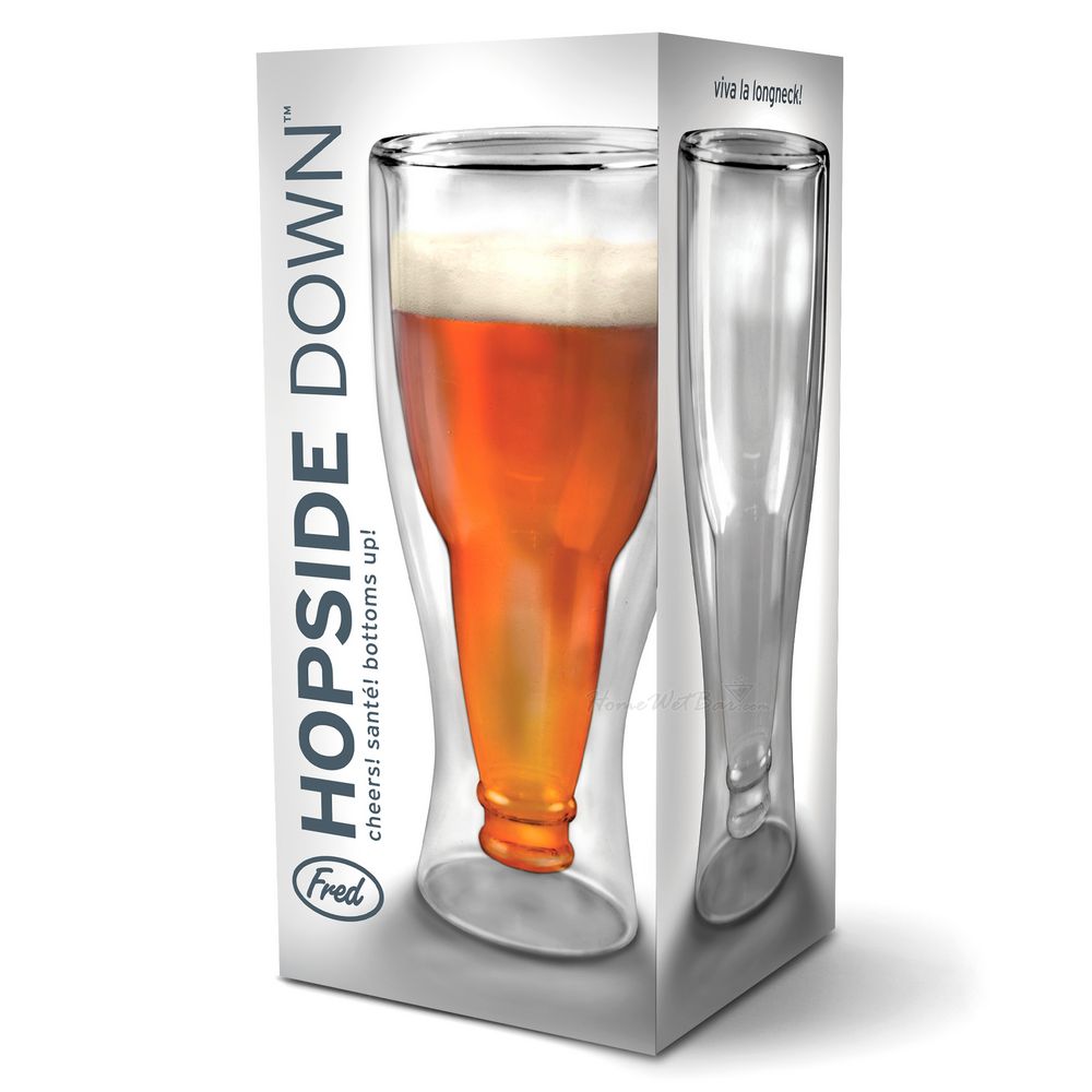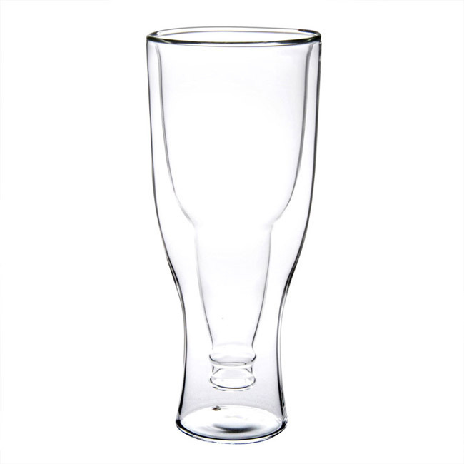 כוס זכוכית לבירה עם שכבה כפולה בעיצוב בקבוק.